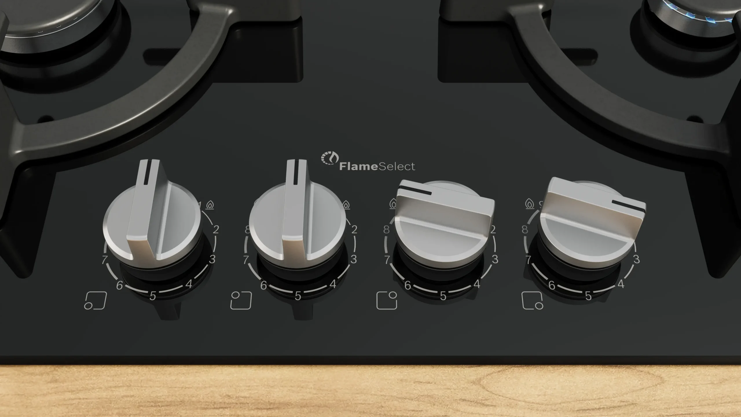Газов керамичен котлон за вграждане, Серия 6, четири горелки, уок котлон и FlameSelect