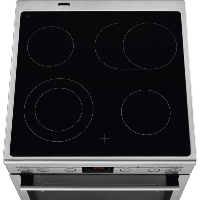 Готварска печка с керамични котлони и електрическа фурна, енергиен клас А и обем 72 литра