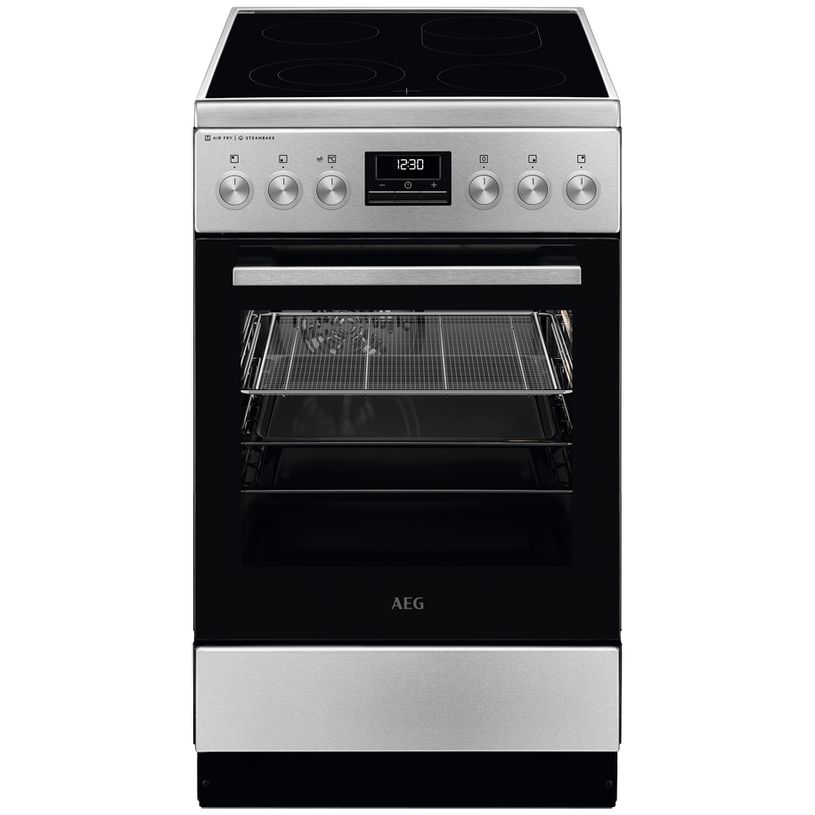 Готварска печка с керамични котлони, SteamBake, AirFry, енергиен клас А и обем 58 литра