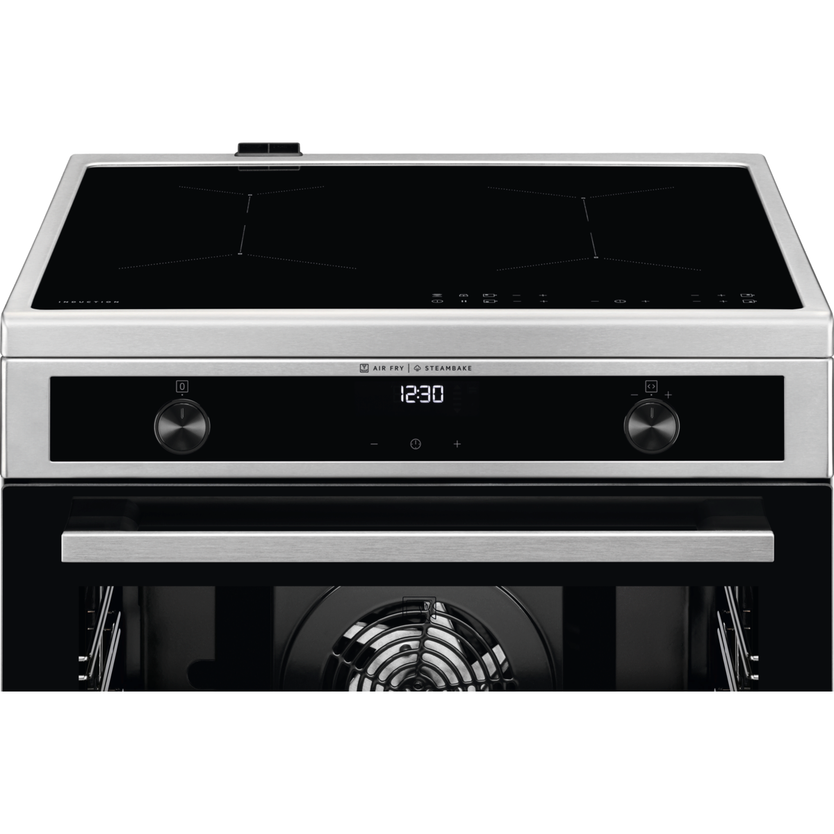 Готварска печка с индукционни котлони, SteamBake, AirFry, енергиен клас А и обем 73 литра