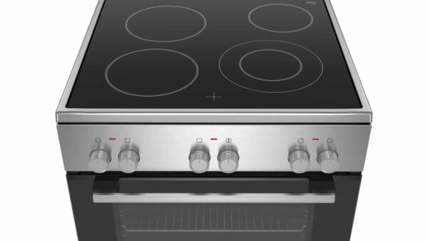 Готварска печка с керамични котлони и електрическа фурна, енергиен клас А и обем 66 литра