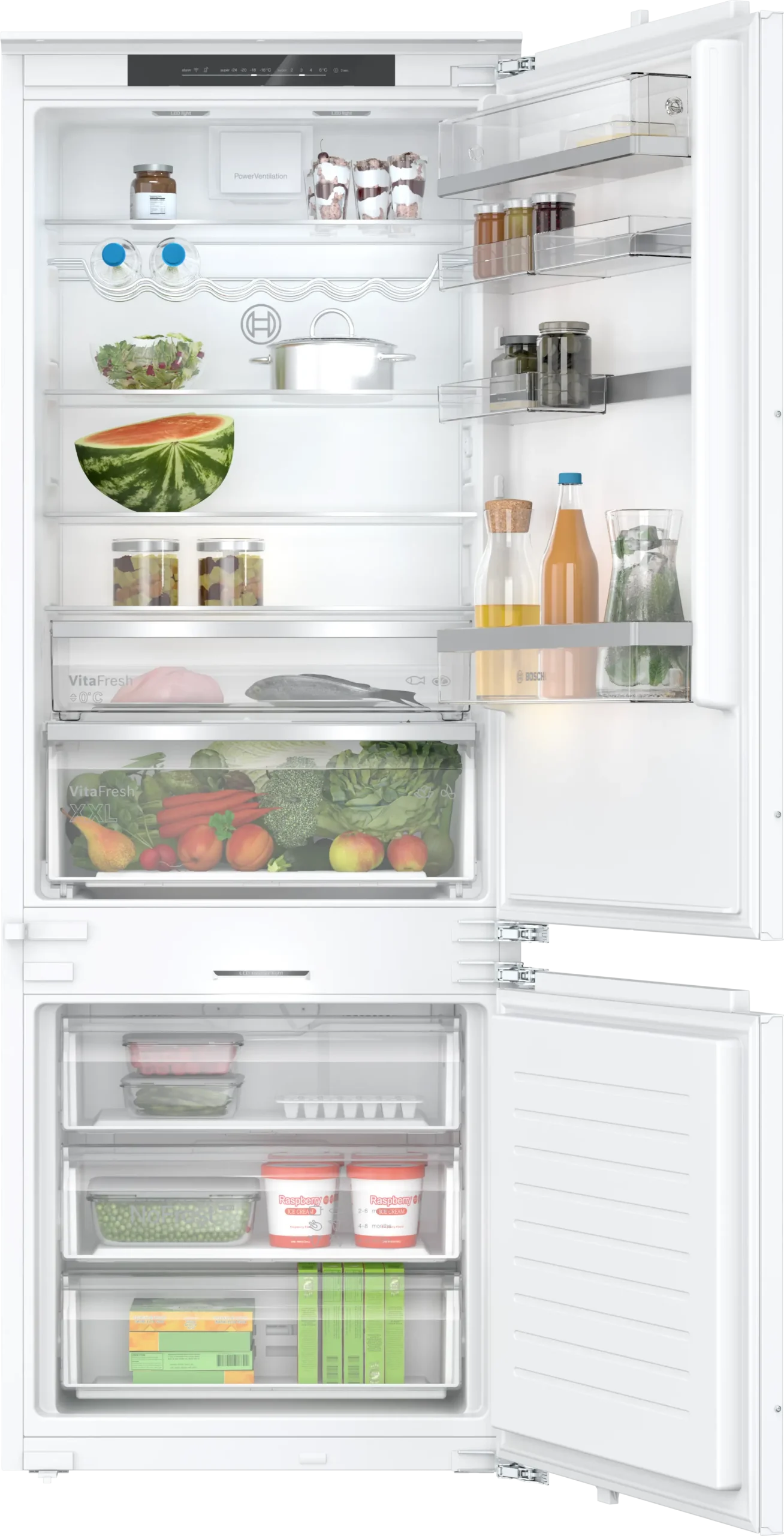 Хладилник с фризер за вграждане със система No Frost, Серия 6, Wi-Fi Home Connect, енергиен клас D и полезен обем 382 литра