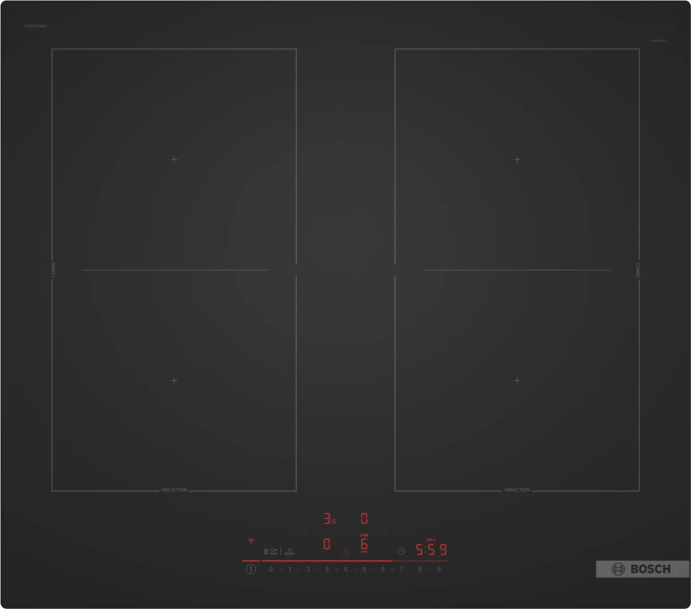 Индукционен котлон с CombiZone за вграждане с четири зони, Серия 6, черен мат, WiFi Home Connect и сензорно управление