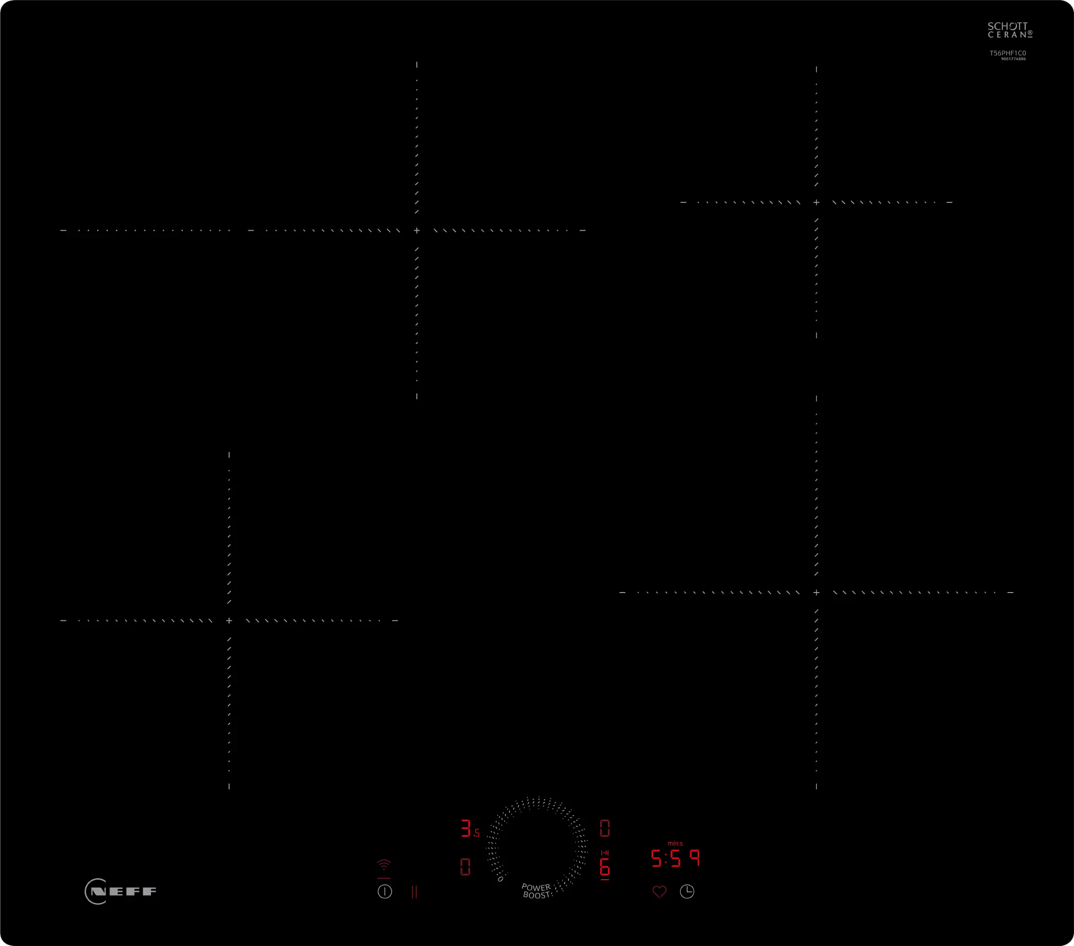 Индукционен котлон за вграждане с четири зони, WiFi HomeConnect и сензорно управление