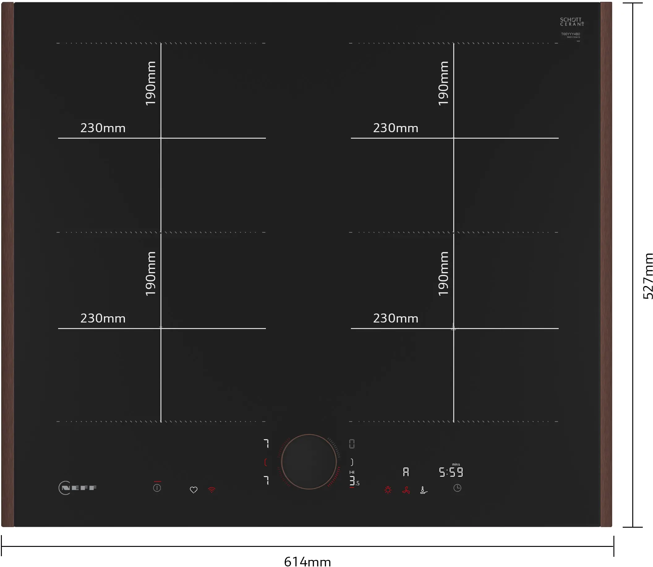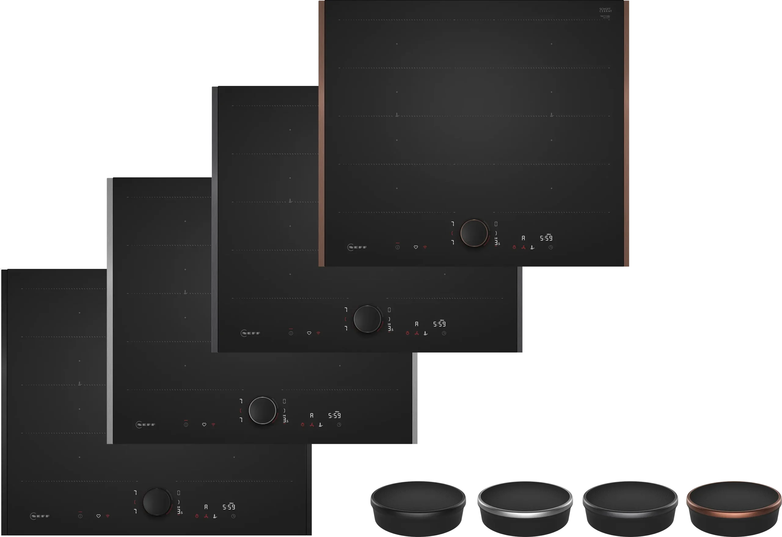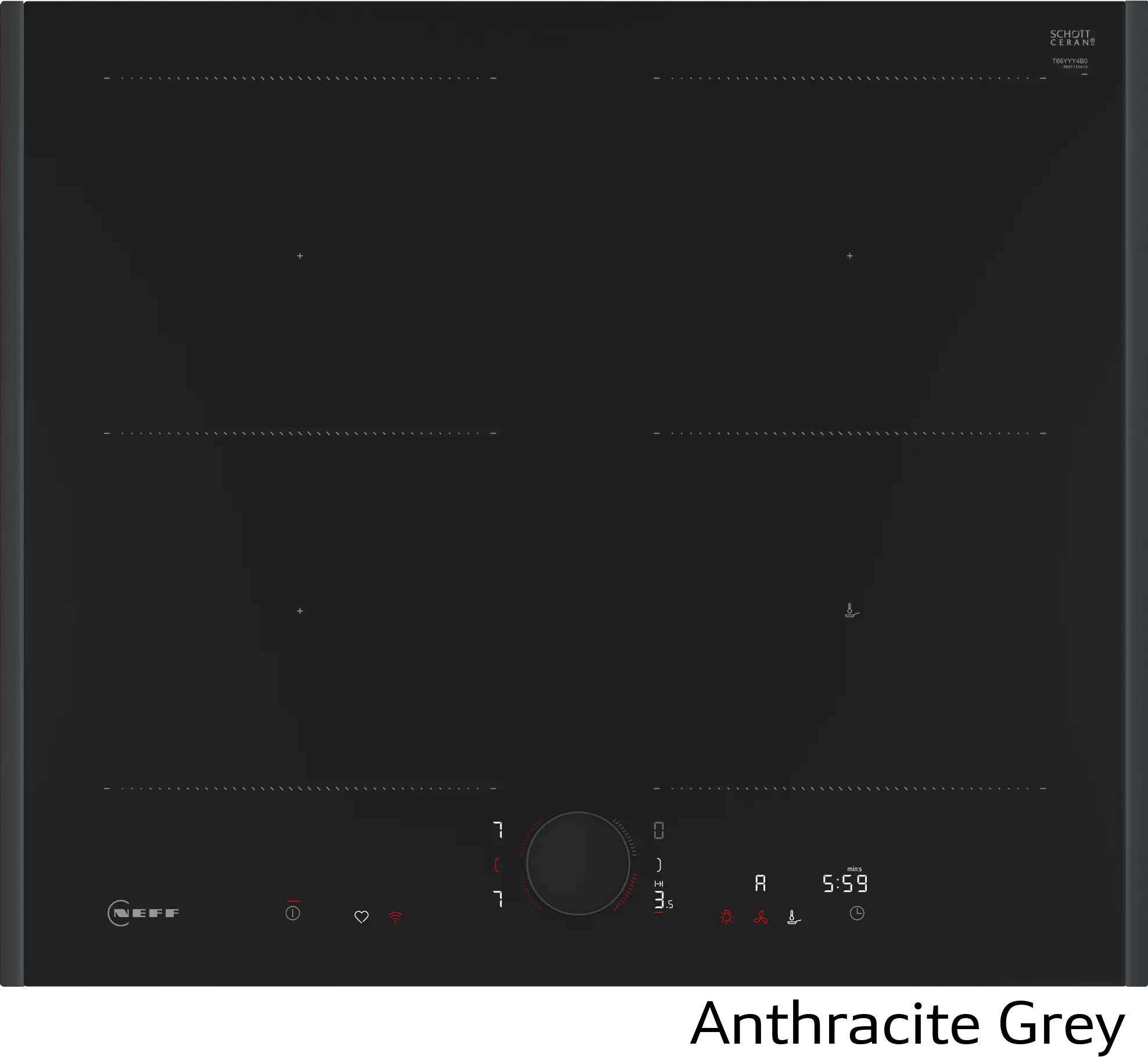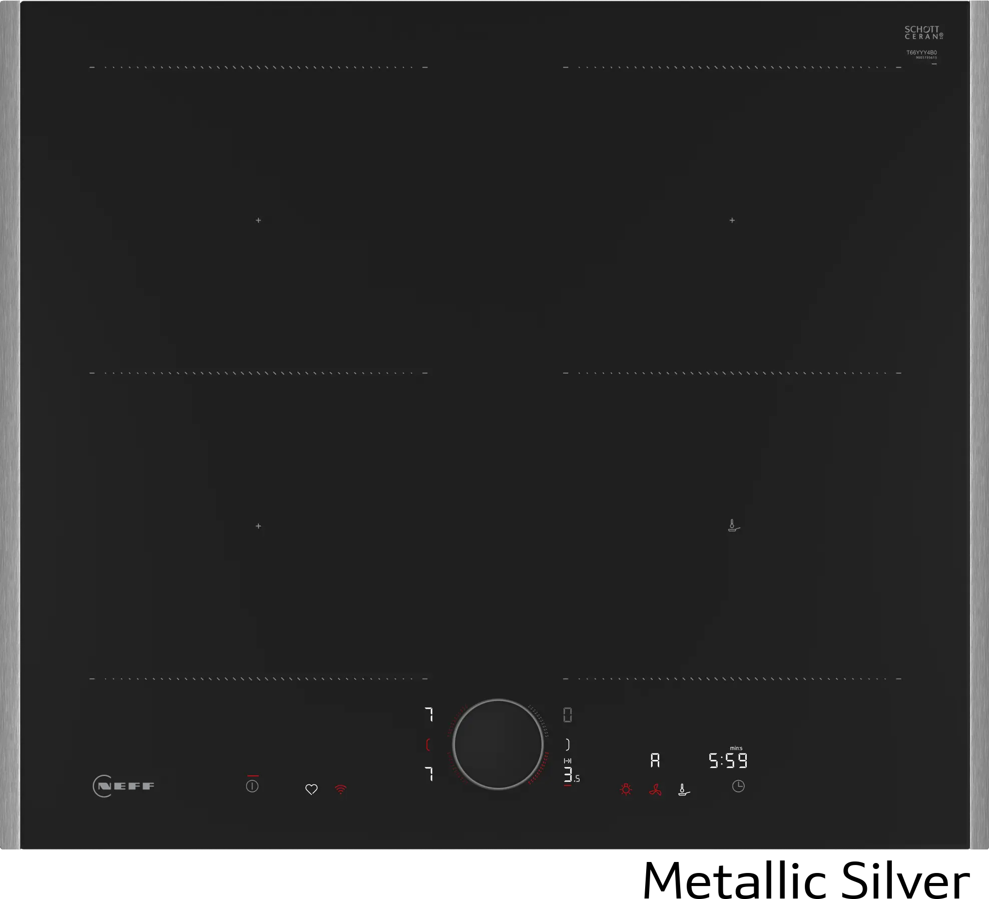 Индукционен котлон с FlexInduction за вграждане с четири зони, WiFi HomeConnect, и сензорно управление с TwistPad Flex