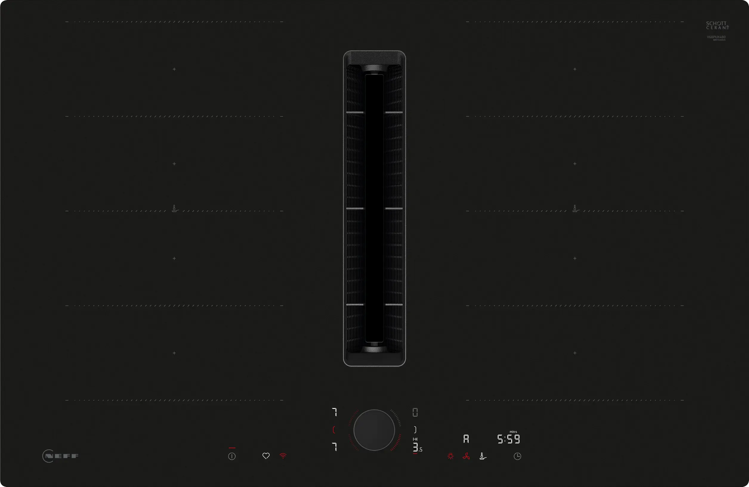 Индукционен котлон с аспиратор за вграждане, FlexInduction, четири зони, WiFi HomeConnect, сензорно управление с TwistPad Flex