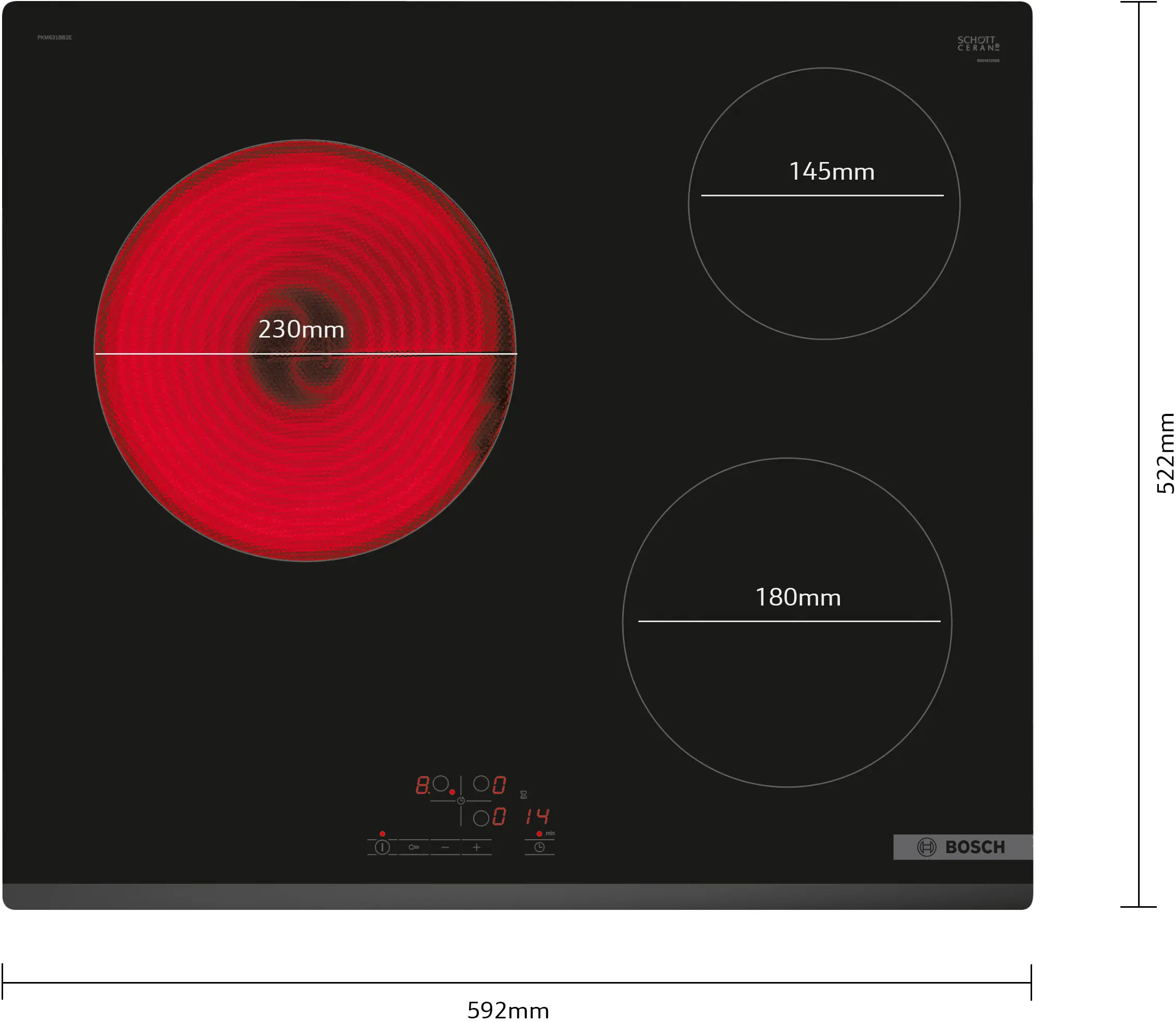 Керамичен котлон за вграждане, Серия 4, три зони и сензорно управление