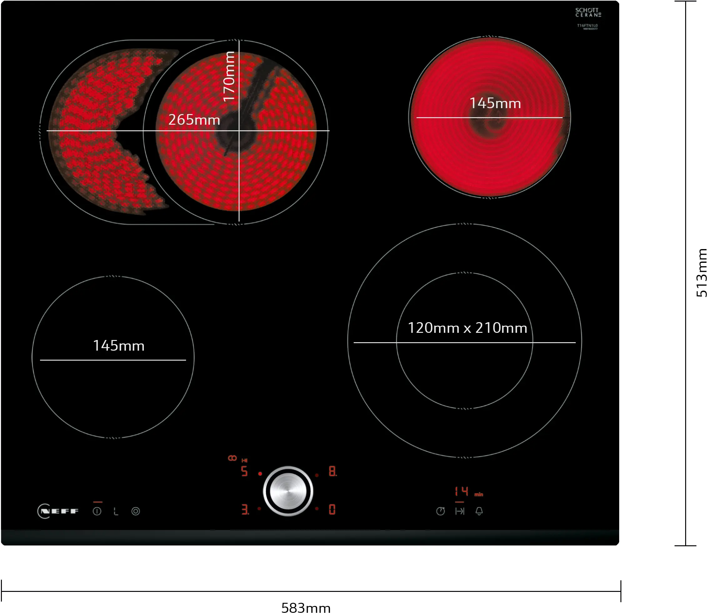 Керамичен котлон за вграждане с четири зони и сензорно управление с TwistPad