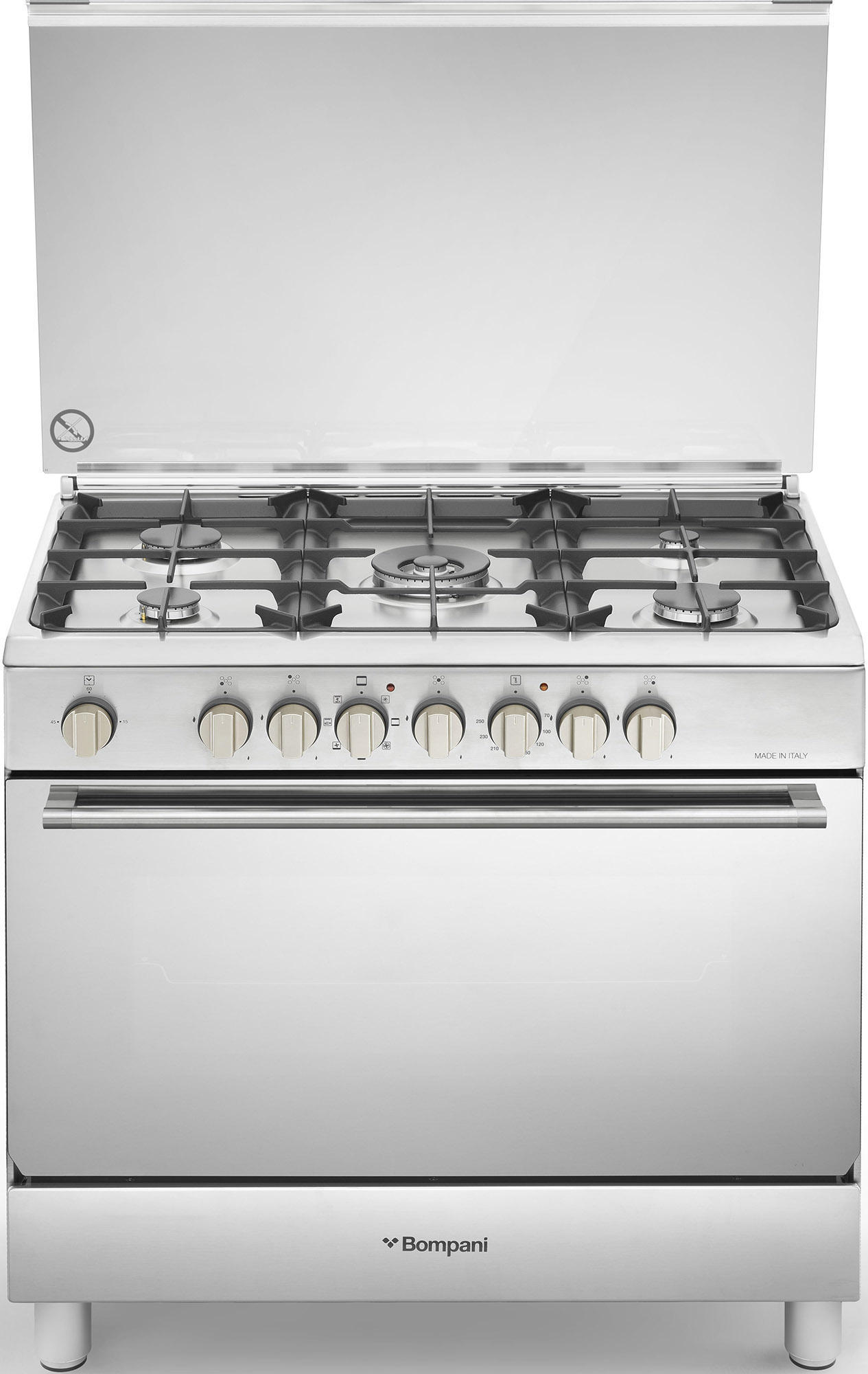 Полупрофесионална готварска печка с 5 газови котлона и мултифункционална електрическа фурна
